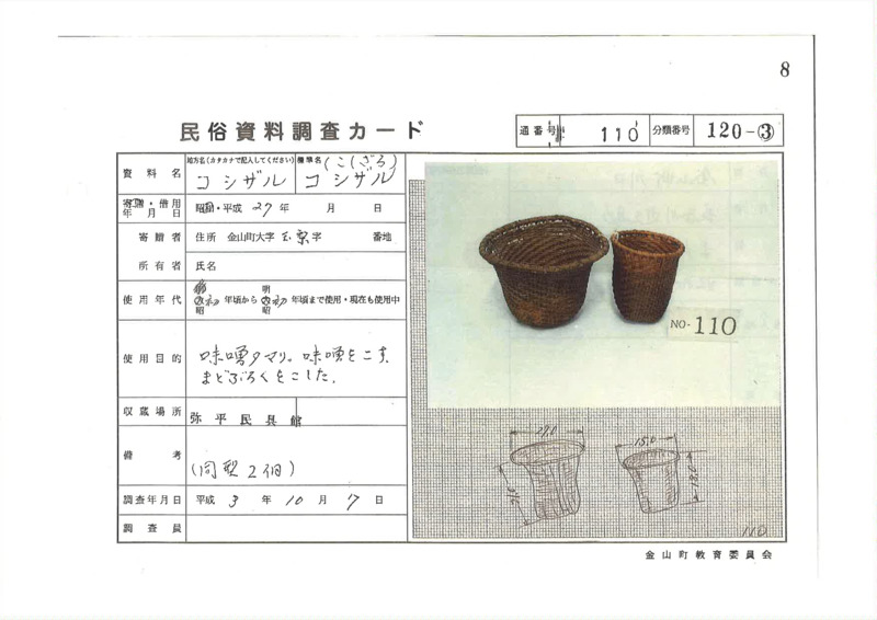 - 台帳解説:「こしざる」密造酒(ドブロク)をこの「ザル」でこし(粕(かす))を除きました