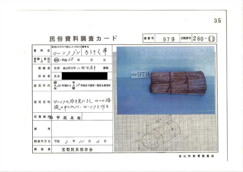 大分類:生産用具 小分類:手工用具 細目:蝋燭作り用具